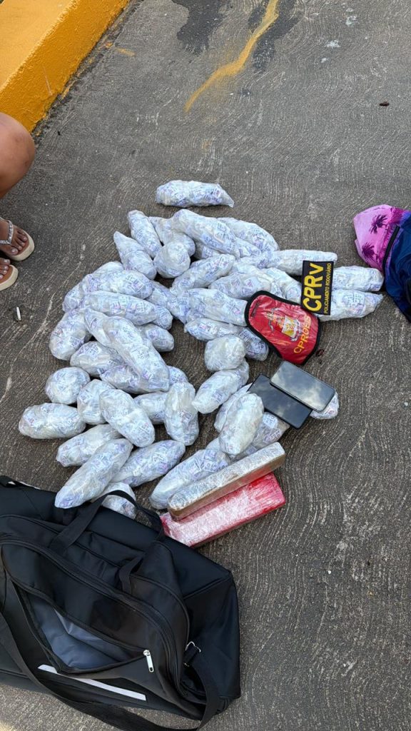Mulher acusada de transportar uma grande quantidade de drogas em um ônibus, é presa por policiais do Comando de Policiamento Rodoviário (CPRv), na manhã desta sexta-feira (16). Os pacotes de maconha, e principalmente cocaína, estavam em uma bolsa, que seria da mulher, onde os agentes encontraram vários tabletes de entorpecentes. A prisão aconteceu próximo ao pátio do pedágio da Via Lagos (RJ-124), na altura de Rio Bonito.